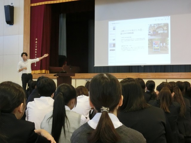 校外学習に向けて 公開日 2025/11/17 更新日 2025/11/17 今日のできごと 2年生は年明け1月に実施する校外学習に向け、ガイダンスを行いました。「上野動物園や東京国立博物館は、中学生入場料無料」が伝えられると体育館にどよめきが起こりました。「それだけ見る価値があるというメッセージなんだよ」と言われると、生徒たちのまなざしがより真剣になりました(菅野) いいね(1) 2年