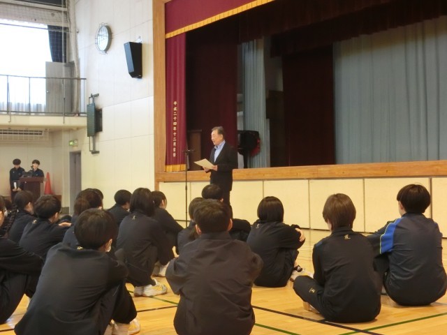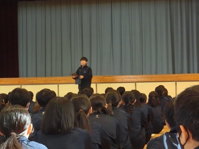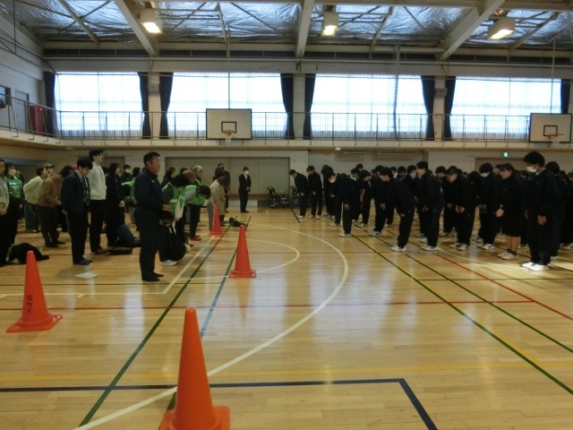 地域合同防災訓練 公開日 2025/11/21 更新日 2025/11/21 今日のできごと 3年生の救急救命講習に続き、1,2年生は地域合同防災訓練に参加しました。昨年度よりもブラッシュアップしている点、それは防災委員会がかかわっていることです。開閉会式では司会進行やあいさつもしっかりできていました(菅野) いいね(1) 地域連携