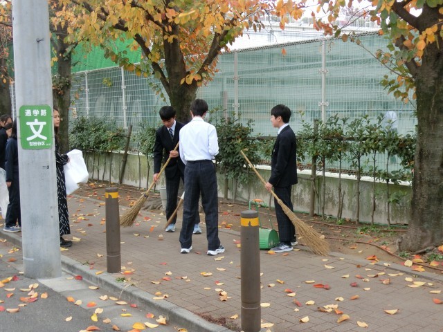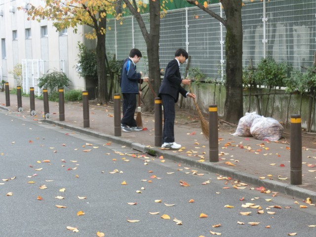 清掃ボランティア 公開日 2025/11/28 更新日 2025/11/28 今日のできごと 落ち葉の季節です。学校の敷地にも落葉樹が多くあり、この季節は主事さん泣かせ。掃いても掃いても追いつきません。そこに助っ人として登場するのは、桜木中生徒の清掃ボランティアです。今年は昼休みの時間帯に活動をしています(菅野) いいね(1) 生活 2年