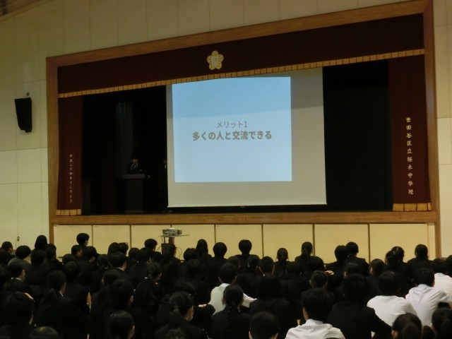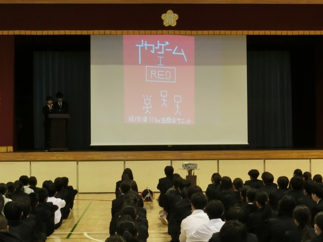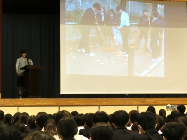 今日の生徒会朝会は生徒会サミットのイカゲームの参加者募集の話題や、落ち葉掃き清掃などの事が伝えられました(菅野)