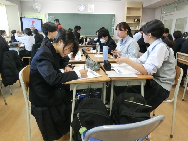 大人から聞く 公開日 2025/12/08 更新日 2025/12/08 今日のできごと 「現在の自分を知り、大人になった自分を思い描く」とは言え、いきなり中学生にそんなことは無理!ということで、現在職に就いている大人の方からご自分の体験談を話していただきました。生徒からの質問にも笑顔で答えていただきました(菅野) いいね(0) 1年 キャリア教育