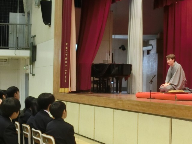 昨年もこの時期に行われた教科「日本語」の落語体験。今年も2年生のために来ていただいた三遊亭ごはんつぶさん。なんと昨年来ていただいた時と髪型ががらりと変わり、「あの人がごはんつぶさん?」とわからなかったほど。それもそのはず、昨年度行われた公推協杯 全国若手落語家選手権という落語コンクールで優勝したとのこと。1年間でこれだけ落ち着きが出るとは。。素晴らしい方に来ていただきました(菅野)