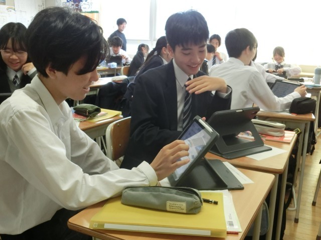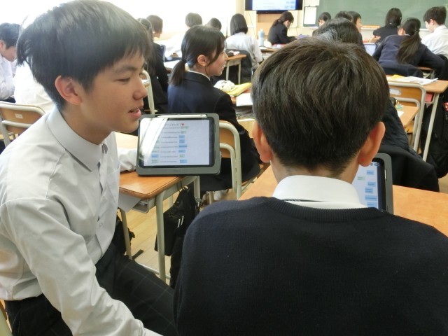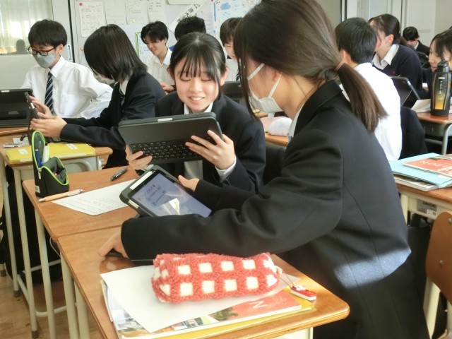 マッチングアプリ? 公開日 2025/12/12 更新日 2025/12/12 今日のできごと 「桜とイルミネーション、どっちがきれい?」「寿司と焼肉、どっちが美味しい?」など比較級を使った英文をペアでやり合い、どのくらい相手と‘相性がいいか’を競うゲームです。さて結果はいかに~。。(菅野) いいね(2) 授業 2年