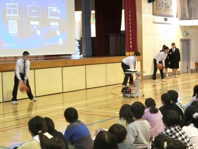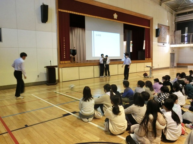 部活動紹介では走り方を見せたり、ボールのパスやドリブルの技を披露していました(菅野)
