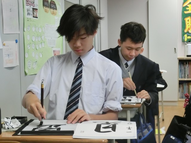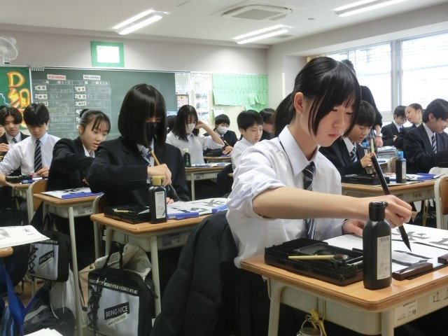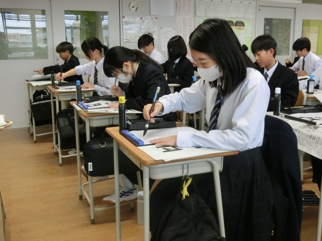 筆を持つと、教室は普段の授業とは違う雰囲気に包まれます(菅野)