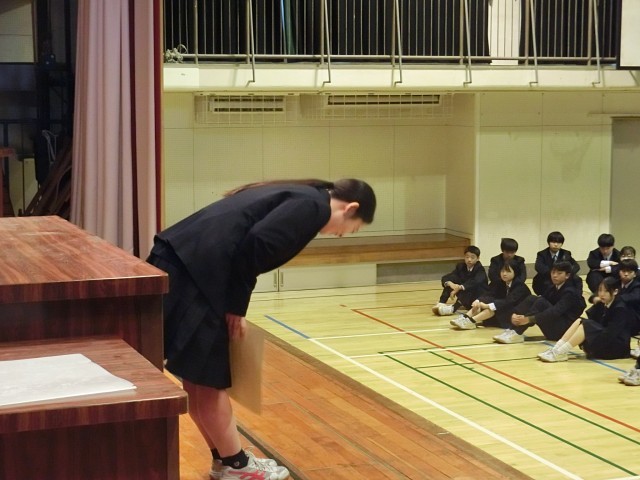 全国納税貯蓄組合連合会と国税庁が主催する中学生の税についての作文で都税事務所長賞を受賞した生徒の表彰です。受賞も素晴らしいですが、皆へのあいさつも最敬礼レベルの立派な礼でした(菅野)