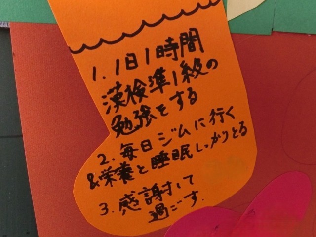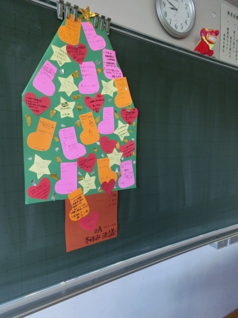 冬休みの決意 公開日 2025/12/27 更新日 2025/12/26 今日のできごと 今年の冬休みは13日間。例年に比べ少し長めです。いろいろなことができそうですが、気を抜くとあっという間に過ぎていきます。2年生のあるクラスには、この冬休みの過ごし方について、それぞれの生徒の決意表明がありました。「なるほど~」「確かに」と思えるものばかり。みんな同じなんだな~と安心します!+1をタップすると。担任、副担任の決意表明が見られます(菅野) +2 いいね(0) 生活