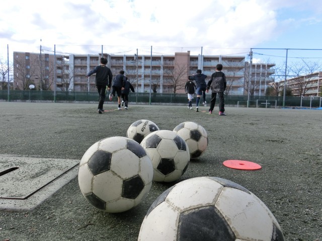 今年最後の部活納め。寒い中、基礎トレーニングを頑張る桜木中生です(菅野)