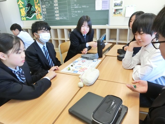 お正月…といえば 公開日 2026/01/09 更新日 2026/01/09 今日のできごと 日本のお正月の伝統的遊びといえば…そう、すごろくです。始業式後の学活で1年生の教室に行ってみると、サイコロの目に班員がくぎ付けに。その理由は…えっ?全員スクワット20回!!(菅野) いいね(1) 1年