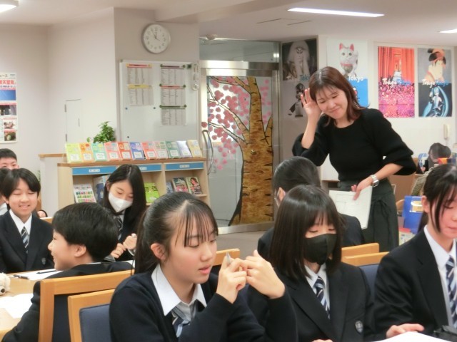 1年の国語では故事成語を学びますが、その前に2年生で習う漢文の基礎を学習しておくと、よりスムースにより深く故事成語が理解できます。という事で漢文の勉強です。まずは書き下し文の読み方の復習!ですが『先生の説明の後に続いて班ごとに声に出してみよう』の声が聞こえません。という事で先生は耳を大きくしています。。。(菅野)