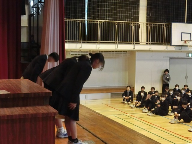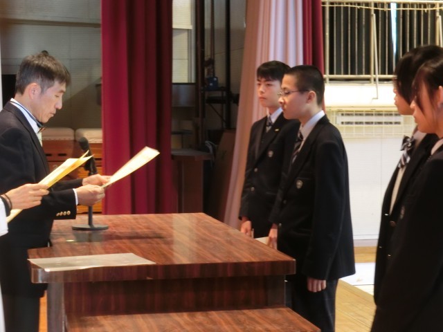 全校朝会の最後に陸上競技部の表彰がありました。1月25日に行われた東京都ロードレース大会の結果、4名が表彰状を授与されました。1位2名、5位1名、6位1名という結果は、学年・キロ数別の競技部門にそれぞれ数百名以上が出場していることを考えると、称賛に値するレベルです。極寒の中、校庭で黙々とひたむきに練習を重ねる陸上競技部の生徒たちの記録は、まさに‘努力は’裏切らない’ですね(菅野)