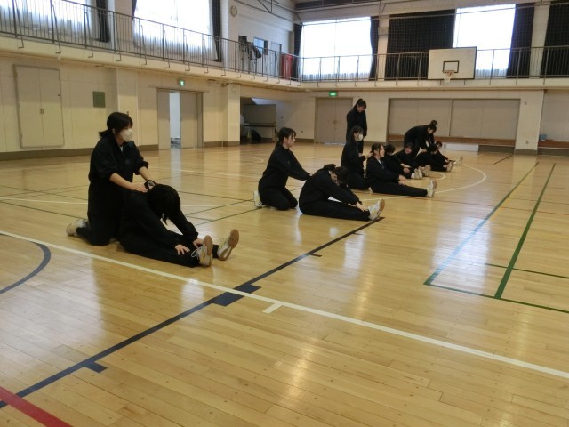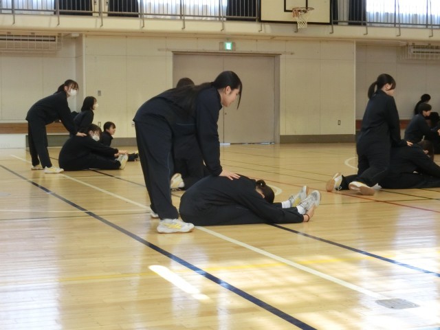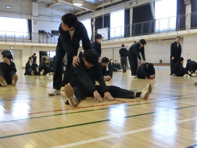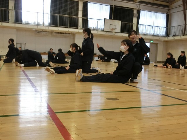 ダンスの前に 公開日 2026/02/17 更新日 2026/02/17 今日のできごと 2年生の体育はダンスです。まずは体を柔軟に動かすためのトレーニングから。顔が床面にぺったりつく生徒もいますが、多くは苦戦しているようです…(菅野) +2 いいね(1) 授業 2年