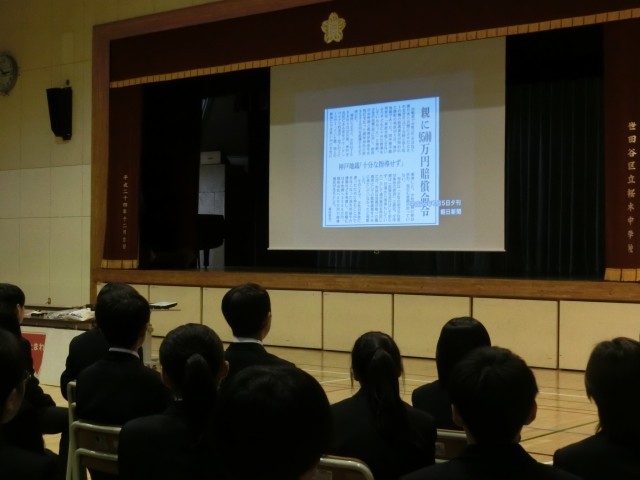 先週行われたセイフティ教室では自転車の乗り方について、世田谷警察署の方から注意喚起がありました。車道を走ることが原則であること、信号機に従うこと、とまれの標識では必ず止まること、など自転車は「車」であることを丁寧に教えていただきました。「ヘルメットはカッコ悪いと思うかもしれないけど、命を守る大切なものだから必ずかぶってください」と力説されていました(菅野)