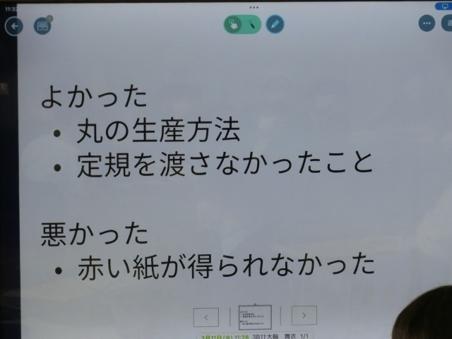 最後の振り返りでは、成功した点と課題をしっかり吟味し自覚している班(国)がほとんどでした。「レンタルすることを思いついた」なんて柔軟な発想でしょう。桜木中3年生が大人なった時の未来は明るいこと間違いなしです!(菅野)