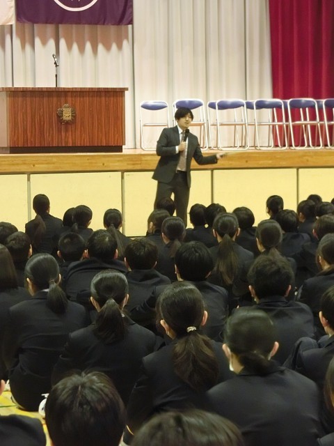 「今日皆さんに伝えたいこと。それは『今の自分の行動が未来の自分をつくる』です。1年間の中で、楽しかったこと、うまくいったこと、またうまくいかなかったことや注意されたことなど様々だったと思います。うまくいった後は次はこれにチャレンジ!これも失敗したので次はこうしてみよう!どうもうまくいかないけど次はこれを試してみよう!どれか自分に当てはまるものはありましたか?