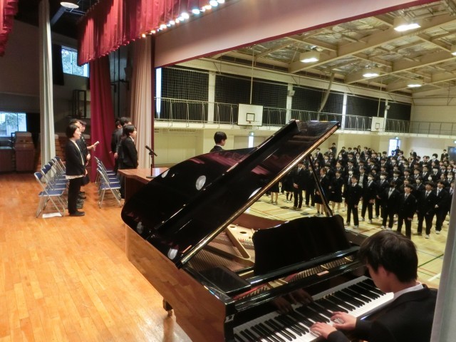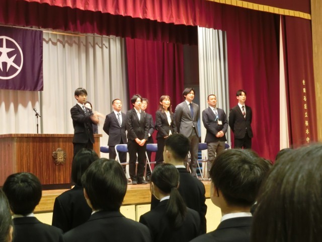 春からはそれぞれ進級します。1年生は後輩ができ、2年生は最上級生になります。先輩として、最上級生としてよい行動をすればよい結果が返ってくる。いい加減な行動は必ず自分に、自分たちに返ってきます。お手本としての桜木中スタンダードをつくるのは先生ではなく、皆さんです。『いわれて動く人』ではなく『自分で判断して正しく動ける人』を目指し、桜木中スタンダードを作っていきましょう。春休み、少し立ち止まってこの1年間を振り返り、4月からの1年間の過ごし方を考えてみてください」この日、修了式と同時に離任式も行われました。桜木中からは11名の先生が転出します。(菅野)