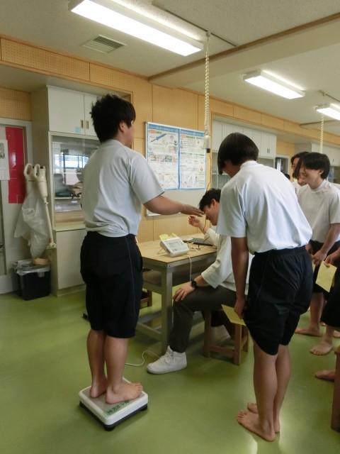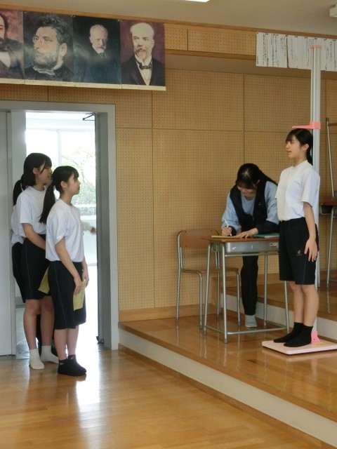 ドキドキ!わくわく! 公開日 2026/04/13 更新日 2026/04/13 今日のできごと 新学期恒例といえば、身体計測。1年間の自分の成長具合を測ります。特に人の成長の中で、中学3年間の身長や体重は‘驚異的な’伸びを記録する時期です。一喜一憂しながら周囲の友達と成長度を共有する男子に対し、静かに自分の成長をかみしめる女子。これも中学生特有の姿かもしれません(菅野) いいね(1) 3年