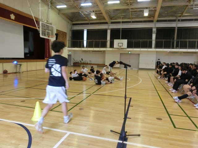 表現方法 その2 公開日 2026/04/14 更新日 2026/04/14 今日のできごと 技を披露する女子バスケットボール部。部員同士のもめ事を外から駆け込んできた生徒が解決する、というストーリーを演じる男子バスケットボール部。さわやかな笑顔で語りかけるバレーボール部。考えましたね~みなさん(菅野) いいね(1) 生徒会
