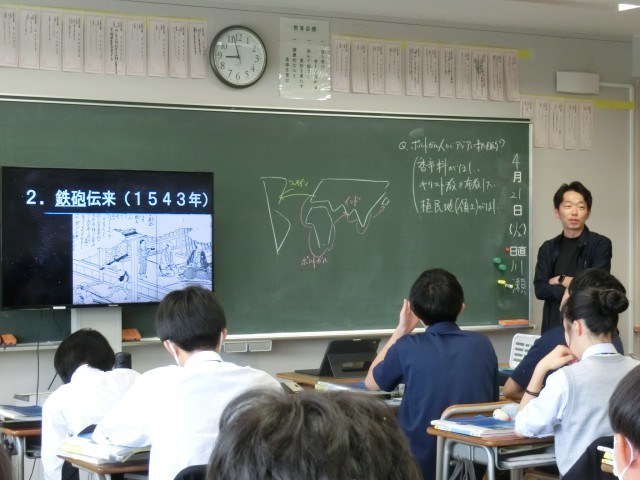 略地図の大切さ 公開日 2026/04/21 更新日 2026/04/21 今日のできごと 地理だけでなく歴史の学習でも、日本と世界との関りを学ぶ際、略地図を描くと、島国である日本がどのように世界と関りができるかが一目でわかります。本当に簡単な誰でも描ける略図であることがポイント。それが黒板にありました!さっそくプリントに写している生徒がいます。よく描けてますよ(菅野) いいね(2) 授業 2年