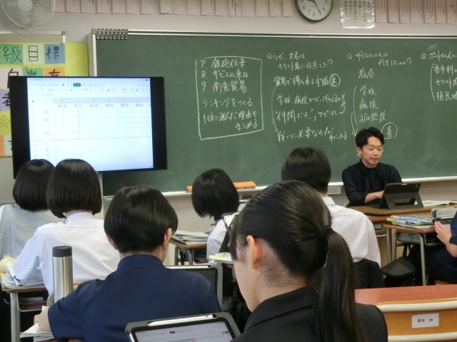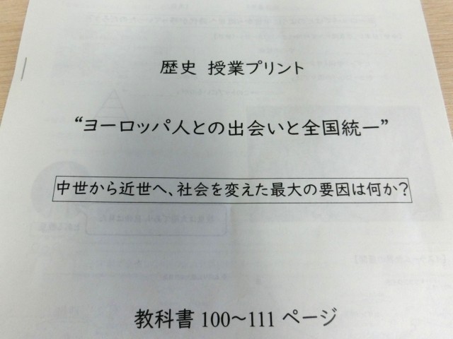 次につながる歴史 公開日 2026/04/21 更新日 2026/04/21 今日のできごと この単元を始めるときに配られたプリント表紙に『中世から近世へ、社会を変えた最大の要因は何か』というテーマが書かれていました。最後の振り返りで、このテーマに立ち返り、今日の授業で学んだ項目がどう関わるかを考える作業をしています。毎時間学ぶのは1つの事象ですが、歴史上では必ずそれが線や面でつながっている、ということを意識させる大切な学習です(菅野) いいね(2) 授業 2年
