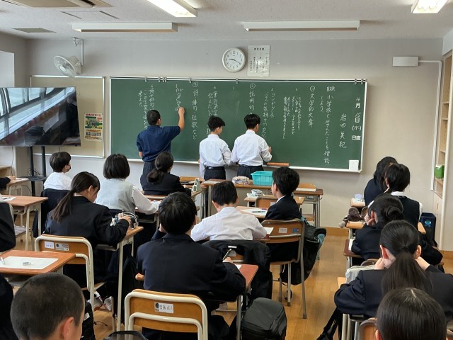 1年生の国語の授業では、小説「はじまりの風」の読解に取り組んでいます。(岩田)