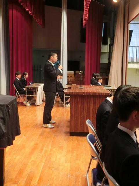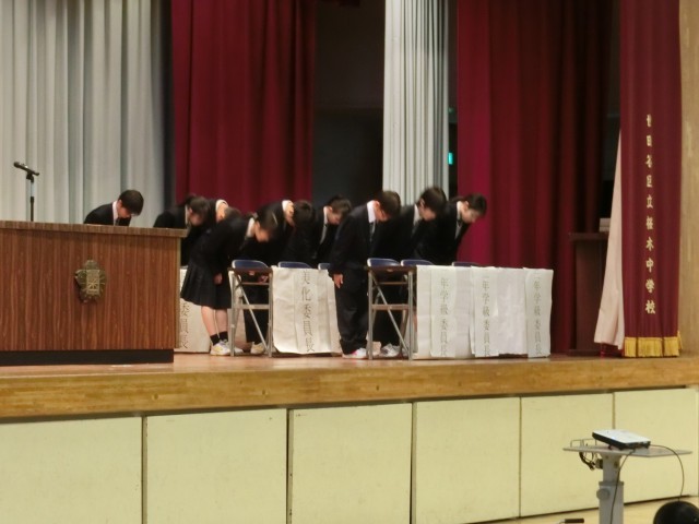 生徒総会 公開日 2026/04/27 更新日 2026/04/27 今日のできごと 今日の生徒会朝会は、紙面での生徒総会を兼ねています。先週金曜日に議案書の読み合わせを済ませているので、今日は委員長のあいさつと承認の手続きを行いました。委員長あいさつの緊張感と最後のお辞儀の仕方から‘心意気’が伝わってきました(菅野) いいね(3) 生徒会