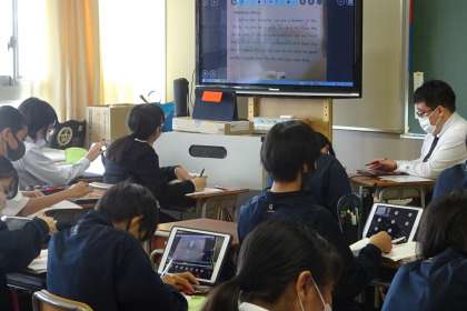 英単語を楽しみながら覚える授業の導入学習BINGOでは、多くの生徒が大きい声を出して発音していました。