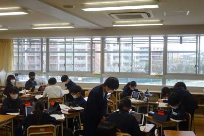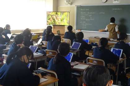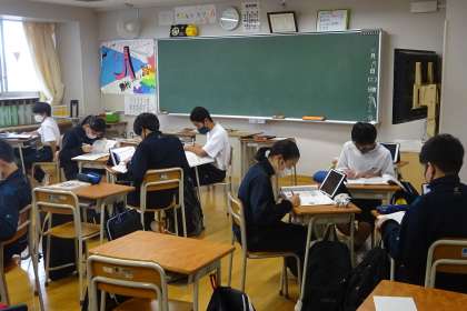 授業の様子 公開日 2021/10/19 更新日 2021/10/19 今日のできごと 社会は大型テレビで動画を見ています。手元には自分のタブレット。 数学はタブレットに提示された問題を解いてます。グループ内でわからないところを聞いたり、教えたり。少人数に分かれていても同じように取り組んでいます。 いいね(0)
