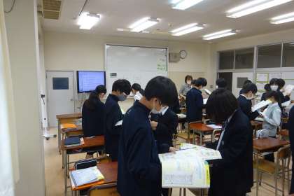 研究授業ではわかりやすいテンポで授業を進め、生徒も大きな声で発音したり、ロールプレイでの会話も元気に行っていました。