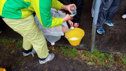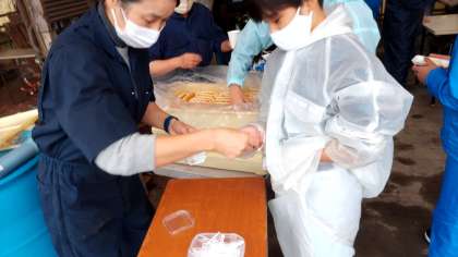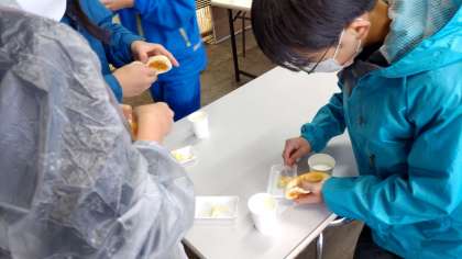 「美味しい〜」と口々に。作ったバターに塩を入れ、パンにつけて食べました。牛乳も美味しかったです。