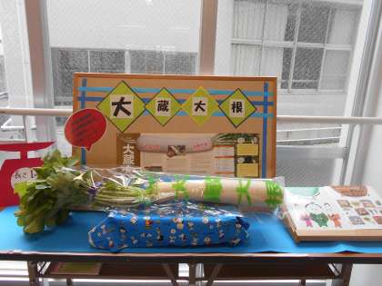 *給食室より 今日は「せたがやそだち」の大蔵大根を使った「大蔵大根のカレーライス」です。 大蔵大根は普通の大根に比べ水分が少なく荷崩れしにくいので、おでんや煮物にすると身がしまり味がしみこみます。今日は、美味しいカレーにしました。