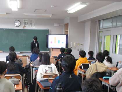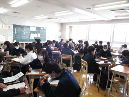 1年生は My Vision というテーマで自己理解に取り組んでいます。自分の将来を考える時には自己理解も必要です。キャリア教育のスタートとして、自分や身近な自分以外の人について知る時間です。