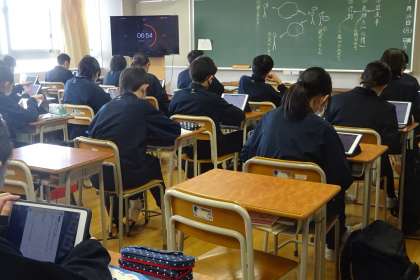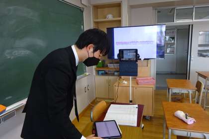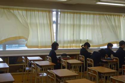教室の換気をしながら英語リスニングやオンライン授業など行っています。