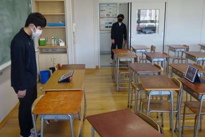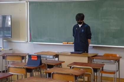 今年度最後の生徒会朝会です。画面越しに話するのであっても緊張するようです。こちらから見ていると、たいへん上手に伝えているのですが。