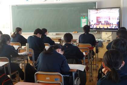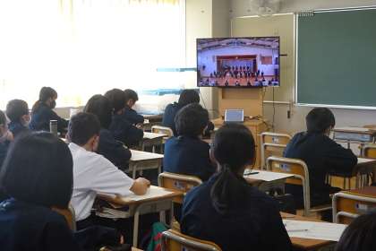 一生懸命合唱する姿勢に、一生懸命見聞きする生徒たちばかりです。