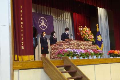 第73回卒業式 公開日 2022/03/18 更新日 2022/03/18 今日のできごと 在校生は代表生徒が出席し、生徒会会長が立派に「別れのことば」を述べました。先輩から学んだこと、先輩の優しさ、強さが伝わったと思います。 また、「別れのことば」は5名で作成したものを3人が読み上げました。3年間の思い出が詰まった内容であり、これまでの喜び、悲しみ、辛さに対して友達、家族とともに乗り越えてきた気持ちが表現されていました。 いいね(0)