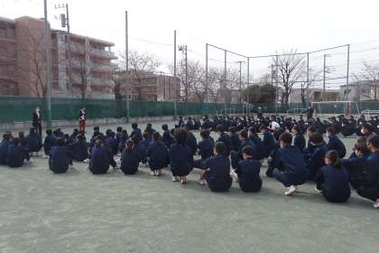 3年生が卒業した後、1・2年生だけの避難訓練を実施しました。