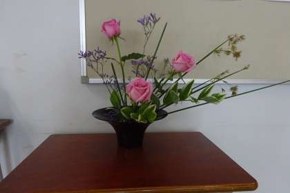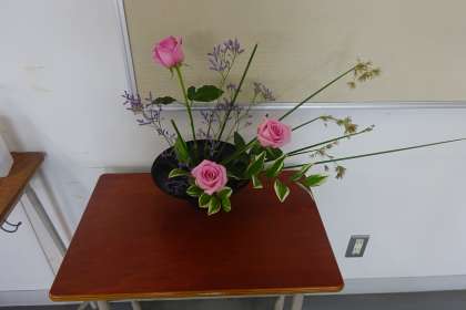 今年度発足した華道部の作品が玄関入ったところに飾ってあります。