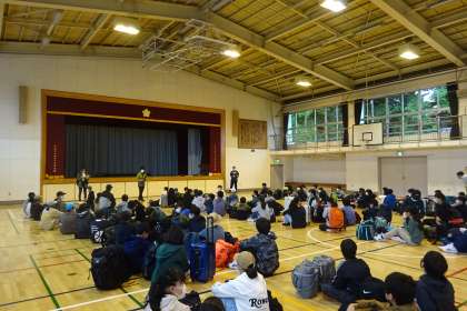 河口湖移動教室 出発式 公開日 2022/05/16 更新日 2022/05/16 今日のできごと 体育館で出発式をしました。 実行委員の司会で始まりましたが、たいへん立派な姿勢で話しを聞くことができ、2日間の生活での成長が楽しみになりました。 いいね(0)