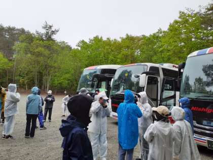 あいにくの雨ですが、これから活動開始です。少し寒いです。