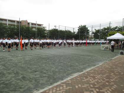 予行練習が始まりました。少し肌寒いと感じる気温ですが、生徒たちは元気いっぱい!