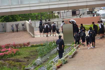 今日の午後は、区内中学校教員の教科別研究会です。よって、生徒は午前授業で下校です。