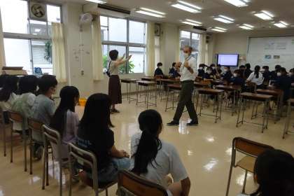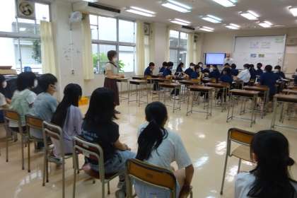 英語少人数授業では、ALTによるコミュニケーションの授業が行われていました。小学生の授業参加でありましたが、小学生にも英語で質問。積極的に答えていました。