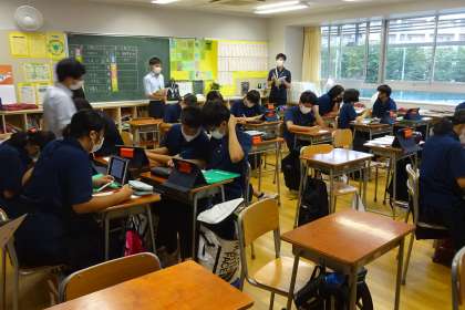 3年数学 公開日 2022/07/15 更新日 2022/07/15 今日のできごと 教育委員会の指導主事の方々が来校し、数学の授業を見てもらい指導・助言をいただきました。 探求的な学び、協働的な学習、そしてねらいを明確にし振り返りを大切にする授業でした。 日頃はグループでよく話し合いや教え合いをしている生徒ですが、今日はちょっとおとなしかったですね。もちろん一生懸命課題に取り組み、教師の発問に答えていました。 いいね(0)