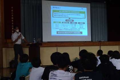熱中症予防講習 公開日 2022/07/19 更新日 2022/07/19 今日のできごと 1・2年生の運動部活動部員対象に熱中症予防講習をしていただきました。 大塚製薬グループの方にわかりやすいお話をしていただいたので、これから本格的な暑さ(すでに暑い毎日ですが・・・)を迎え、夏休みの部活動に頑張る生徒が、少しでも自分で自分の健康を守る意識を持ってもらえればと思います。 単なる「水分補給」だけではなく、熱中症よぼうには「朝食をとる」「十分な睡眠」が必要不可欠です。ぜひ心がけてください。 いいね(0)