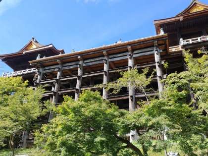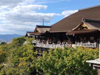 大改修が終わった清水寺。境内を急いで歩きましたが、どの班にも追いつきませんでした。