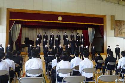 3年生は残念ながら延期となりましたが、1・2年生で学年ごとの合唱コンクールを開催しました。どの学年、どのクラスも素晴らしい合唱で甲乙つけがたい審査となりましたが、1年生はC組、2年生もC組が優勝となりました。指揮者賞は2年C組の女子生徒が受賞しました。