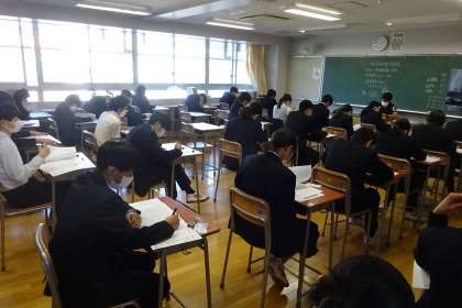 今日の学習習得確認調査の結果やこれまでの学力調査などをもとに、総合的にその生徒の学力を考え、生徒・家庭の希望にそって進路相談をしていきます。