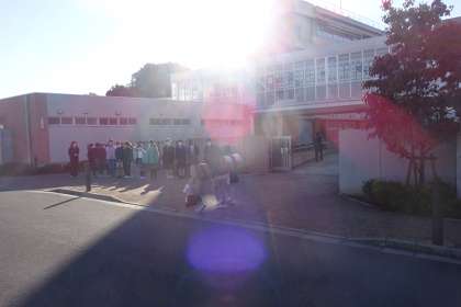 以前は、中学生が2つの小学校に行って小学生と一緒にあいさつ運動をしていましたが、少し形式を変え、小学生にも中学校に来てもらってあいさつ運動をすることにしました。
