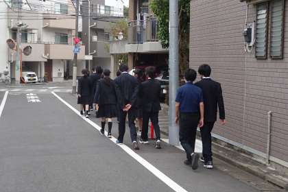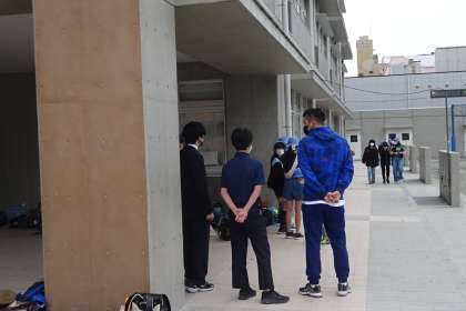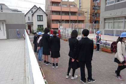 中学校へ戻る際には、小学生に中学校生活のアドバイスをしていました。そして、きちんと並んで戻りました。